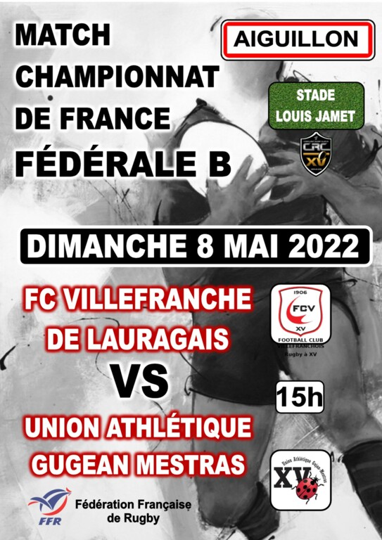 DIMANCHE 08 MAI LE CRCXV ACCUEILLE LA RENCONTRE DE CHAMPIONNAT DE FRANCE FEDERALE B VILLEFRANCHE DE LAURAGAIS / GUJAN MESTRAS
