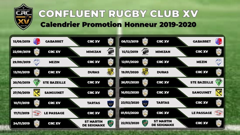 Le CRC XV est engagé en championnat promotion d'honneur dans une poule de 10 qui regroupe : Gabarret, Sanguinet, Mimizan, Saint Martin de Seignanx,Tartas, Duras, Le Passage, Mézin,Sainte Bazeille.