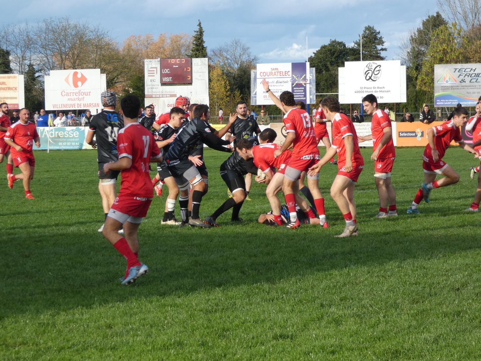 Après un démarrage poussif, les hommes du Confluent reviendront dans le match mais paieront cash leur indiscipline avec sept cartons. Malgré cela dans une fin de match haletante les Lot et Garonnais feront trembler la pays du Marsan!