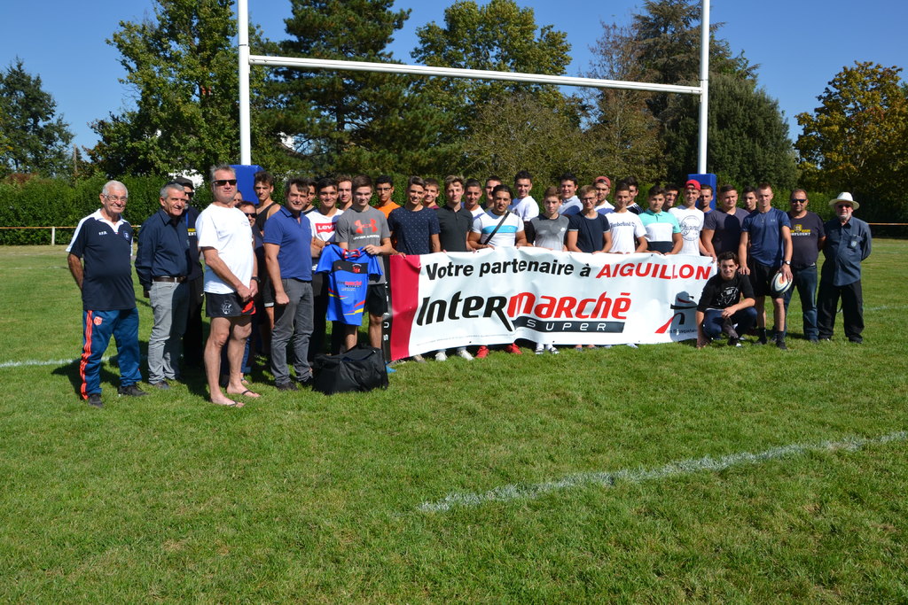 Pour ce lancement de la poule de championnat Juniors Niveau 2 Ligue d' Aquitaine les Piranhas (Entente Union Rugby Confluent/ Union Sportive Port Ste Marie Saint Laurent) recevaient leurs homologues de Fumel après avoir reçu un jeu de maillots tout neuf offert par un partenaire local Aiguillonnais.