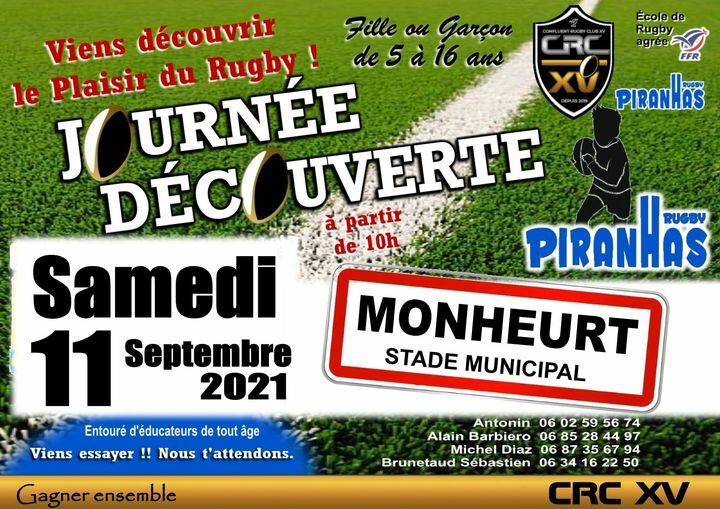 Après deux longues années où inondations et Covid s'étaient alliés pour mettre le stade de Monheurt en sommeil, ce samedi 11 SEPTEMBRE va faire renouer le village à sa tradition d'accueil des jeunes rugbymen.