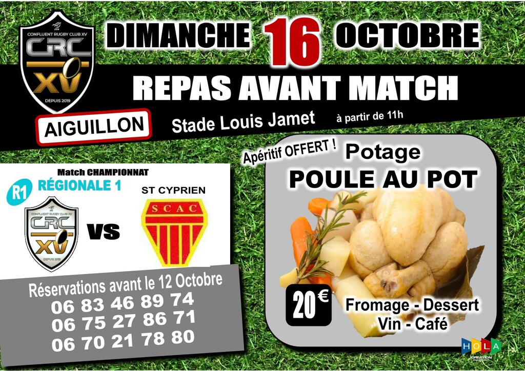 Inscrivez vous rapidement pour participer au repas d'avant match le16 OCTOBRE au stade LOUIS JAMET!